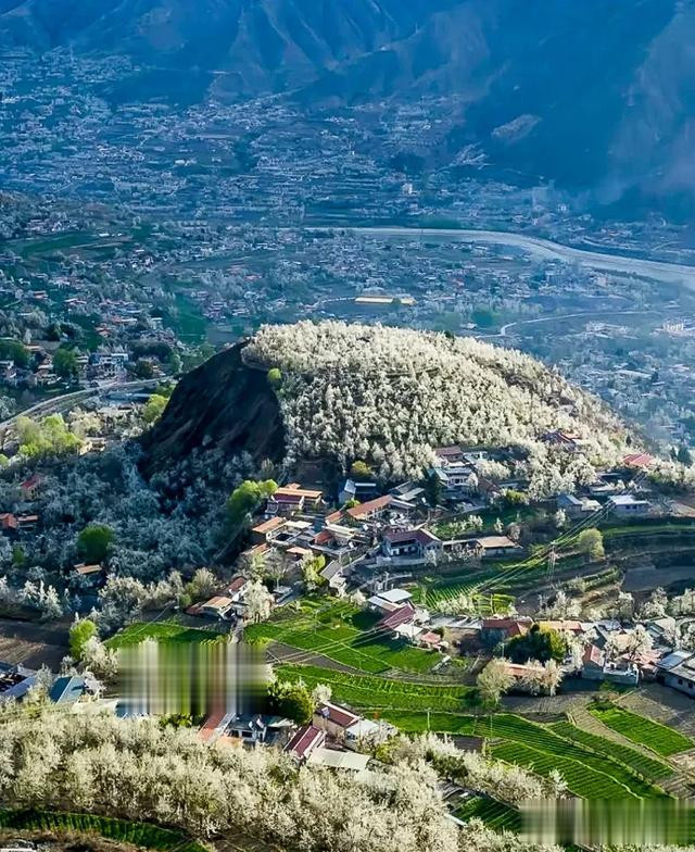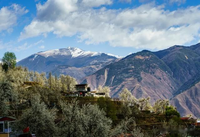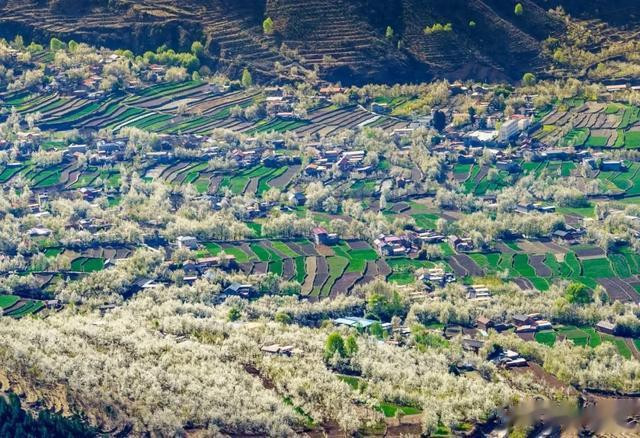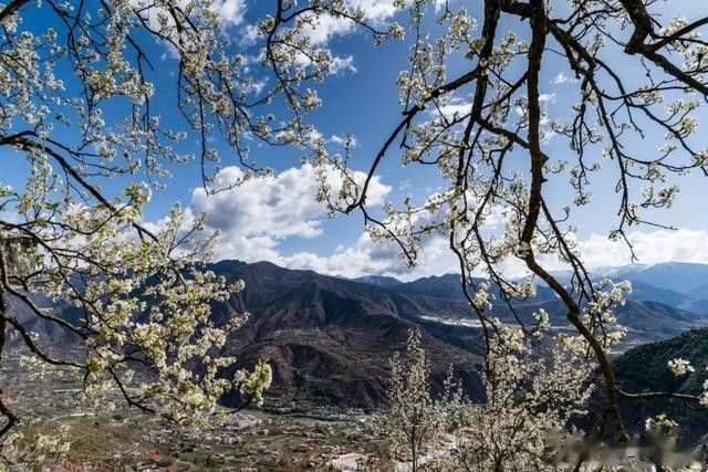 3月,春到金川,大金川河谷两岸,梨花开满山坡,洁白如雪,绵延百余里。