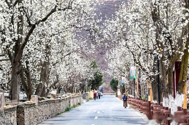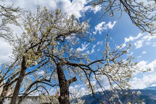 喀尔乡梨花主要集中在金江村、复兴村、德胜村,游客比沙耳乡少,三个村沿大金川河谷,由南向北分布,三村相邻,一路走一路看,还可走进村寨、梨林。适合下午去。